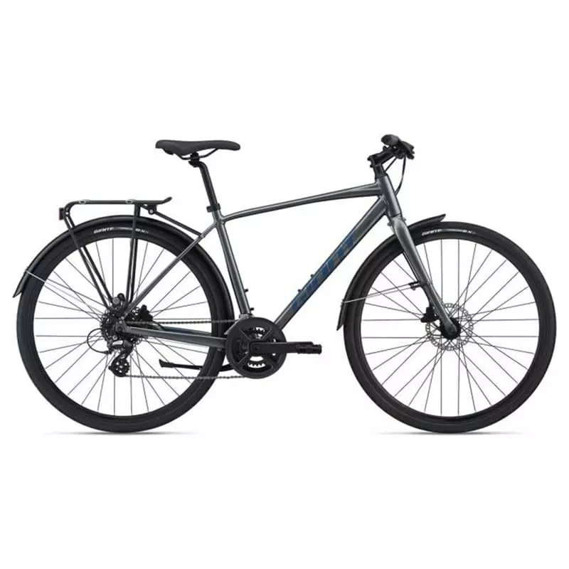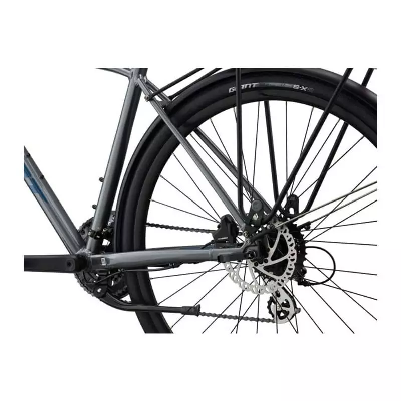 Los neumáticos resistentes a los pinchazos cuentan con los neumáticos Giant CrossCut Metro listos para usar sin cámara (en modelos selectos). Los soportes de bastidor integrados facilitan el transporte de sus elementos esenciales diarios o la carga para las aventuras de fin de semana.