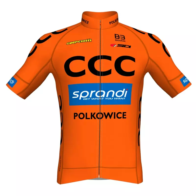 KIT UNIFORME PRO TEAM CCC – SPRANDI – POLKOWICE. Incluye Camiseta, Pantaloneta y Guantes PRO.