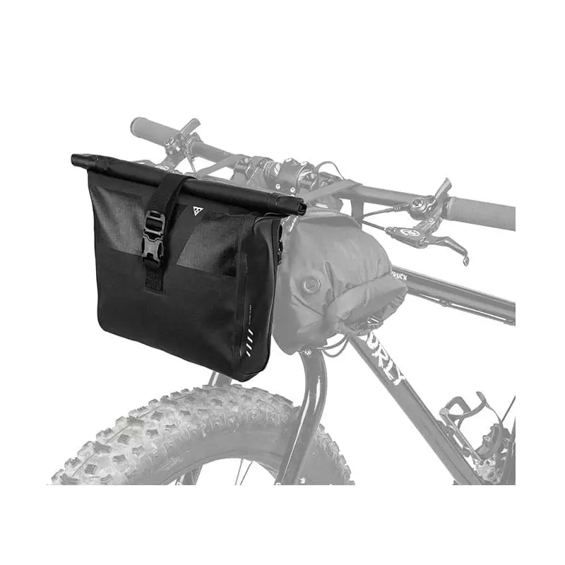 Una bolsa impermeable para manubrio de montaje rápido que se puede usar sola o montada como una bolsa de accesorios encima de nuestro sistema de bolsas FrontLoader. Con costuras soldadas sónicamente, un cierre superior enrollable y cremalleras herméticas, el BarLoader protege su valioso equipo de los senderos secos y polvorientos o de la lluvia cuando conduce en condiciones húmedas.