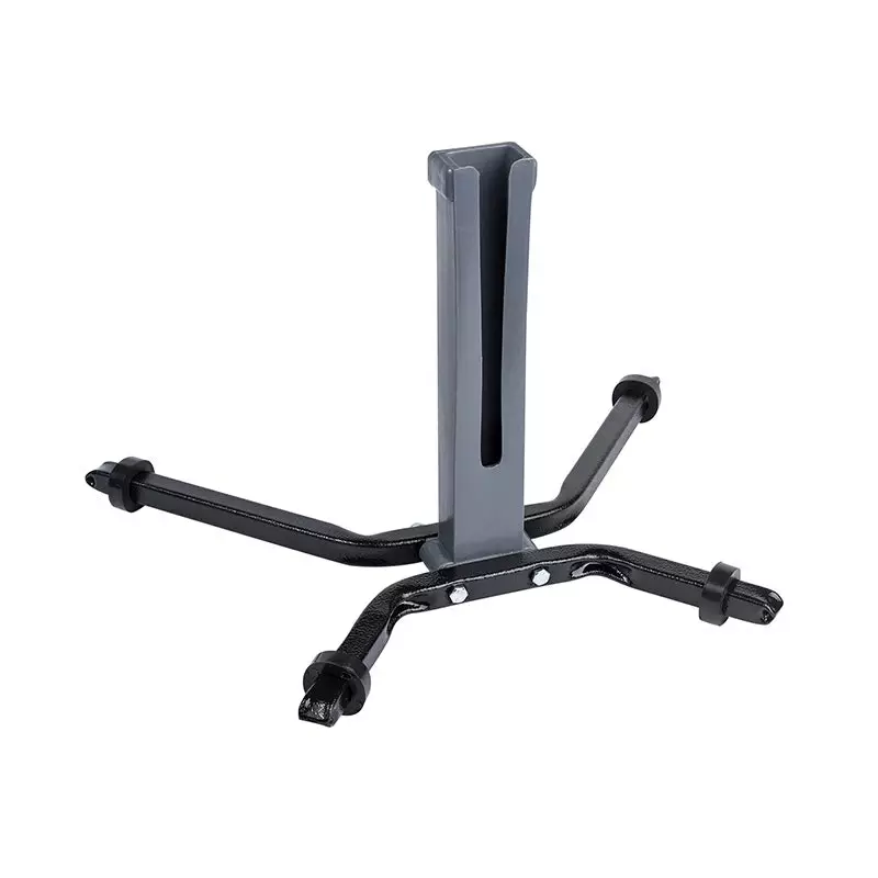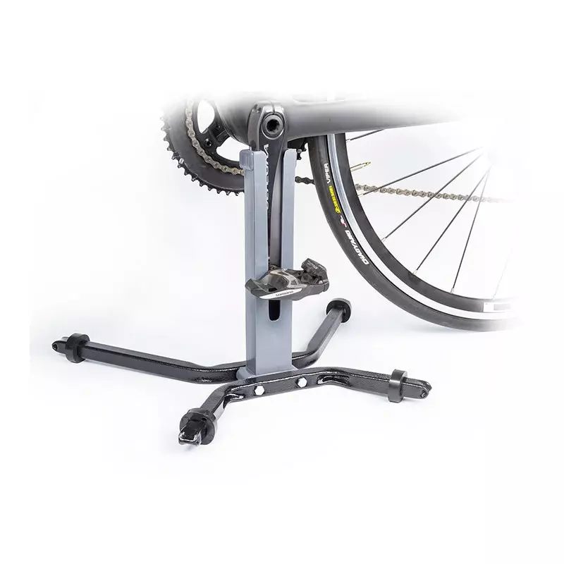 Soporte para almacenamiento o mantenimiento básico de bicicletas de ruta, MTB, pista y BMX. Facilita el lavado y ajustes en casa, se adapta a la tijera trasera de la bicicleta con solo insertar la biela izquierda en el soporte