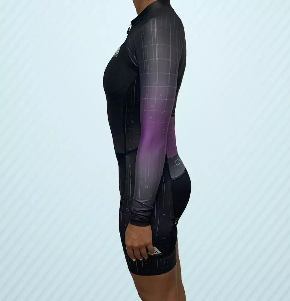Code Enterizo Manga Larga De Ciclismo – Dama – Negro – Purpura