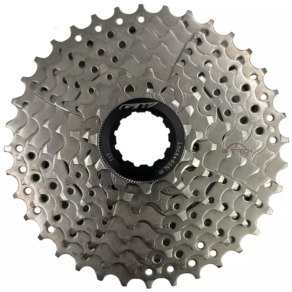 El cassette GW está diseñado para ofrecerle un rendimiento de alta calidad a un precio razonable. La pacha de 8 velocidades presenta los piñones Hyperglide para proporcionar a este cassette rampas y perfiles de dientes específicamente posicionados para brindarle un desplazamiento más rápido y con mayor capacidad de respuesta. Este cassette presenta una relacion de 11-36.