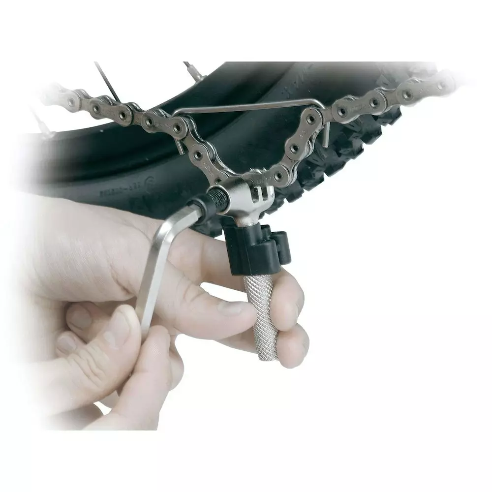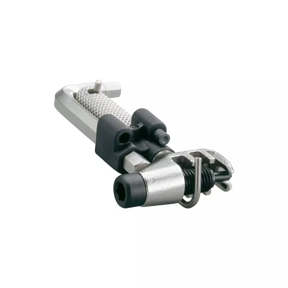 Herramienta de cadena de alta calidad para cadenas de una o varias velocidades de hasta 12 velocidades, No compatible con cadenas de pernos huecos de 11 velocidades Campagnolo. Contiene llaves Allen de 5 y 6 mm y gancho de cadena.