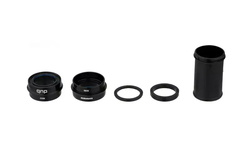 Con este rodamiento interior SRAM DUB Road puedes equipar tu cuadro Gravel BB30 con un ancho de instalación de 68 mm con una biela más ancha. Los espaciadores crean espacio para el eje de bielas ampliando así la línea de la cadena. Esto desplaza los desviadores delanteros AXS controlados electrónicamente en 2×12 velocidades hacia el exterior, lo que a su vez permite utilizar cubiertas más anchas, por ejemplo en aplicaciones de Gravel. El DUB te ofrece el compromiso perfecto entre rodamientos grandes y rigidez de eje.