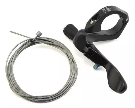 Este es un juego de cables y palanca 1X de tija de sillín telescópica Giant Contact Switch de repuesto. Esta palanca remota debajo de la barra de la tija telescópica reemplaza la palanca de cambios en las conversiones 1x y proporciona una posición ergonómica para el funcionamiento de la tija telescópica. Elimina quitar el pulgar de la barra durante los ajustes del asiento. Se adapta a un diámetro de barra de 25,4 mm y tiene bisagras para montar sin quitar las empuñaduras ni los frenos. Incluye cable.