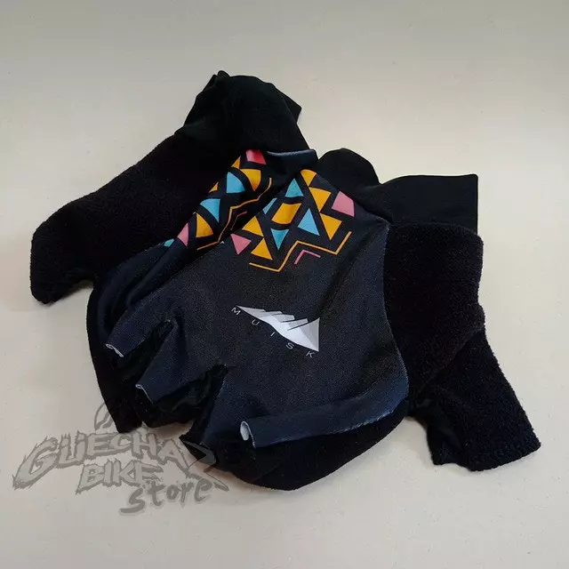 Guantes con tela licrada estampada de secado rápido, con transportanción del aire para mejorar la comodida del ciclista en momentos de sudoración