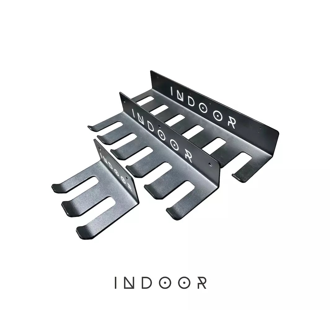 Practico soporte metálico para instalar en la pared y organizar tu especio de entrenamiento, su principal uso es para barras olímpicas pero también sirve como organizador de elementos deportivos como, bandas , lazos , mancuernas en LB , trx, medallas, etc.