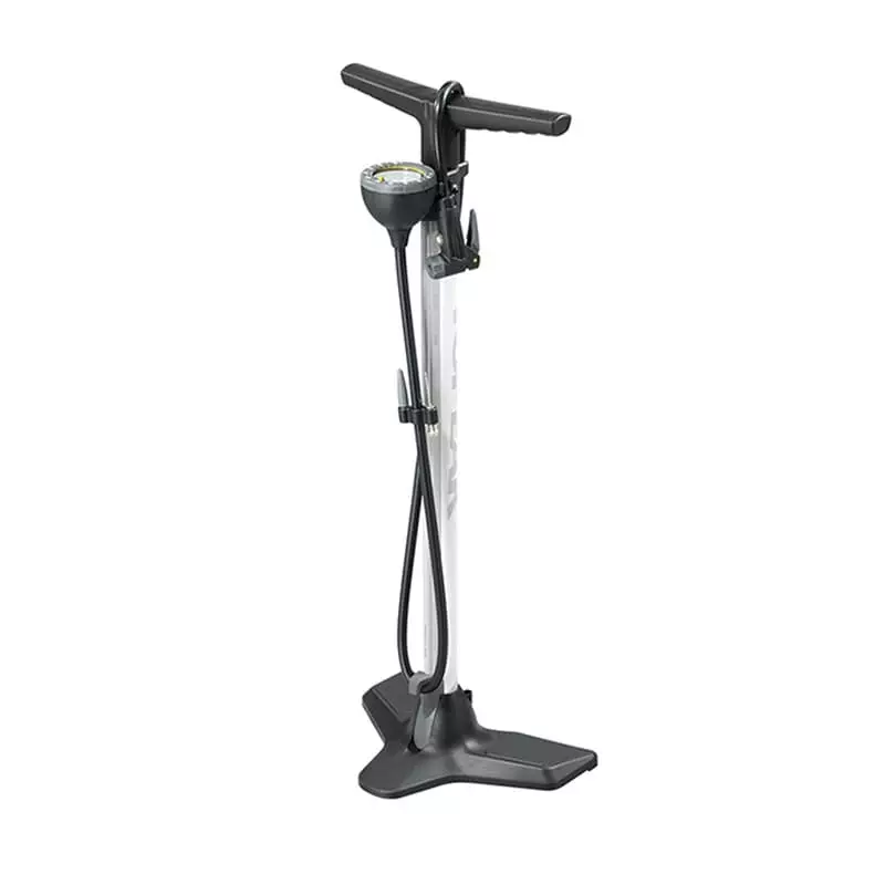 El sistema SmartHead con botón de liberación de aire permite ajustar la presión del aire. Base estable de tres pies de ancho con barril de acero más delgado para bombear más fácilmente hasta 200 psi. Manguera extra larga de 120 cm (47 pulgadas) para facilitar el acceso al neumático delantero y trasero o mientras la bicicleta está en la mesa de trabajo.
