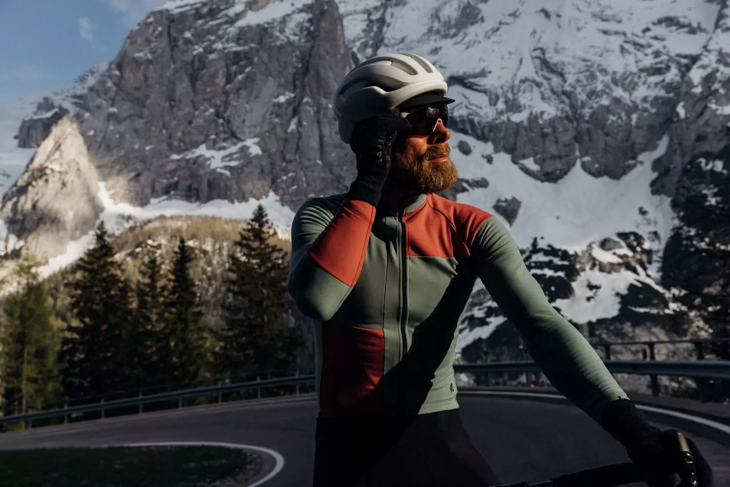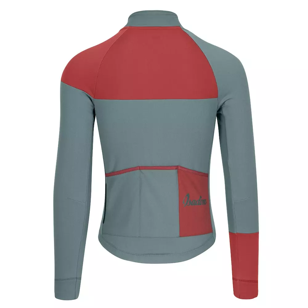 Camiseta / Jersey / Maillot de ciclismo en manga larga marca Isadore, modelo «Patchwork Long Sleeve Jersey», para hombre. Este es un jersey de muy alta tecnología, hecho a mano en Eslovaquia. La tela es una mezcla espectacular de lana merino (44%) con poliéster (53%) y lycra (3%), con lo cual Isadore ha creado un jersey muy cómodo y liviano, que respira y regula la tempertura del cuerpo de manera natural, a su vez brindando protección UV hasta en las jornadas más intensas.