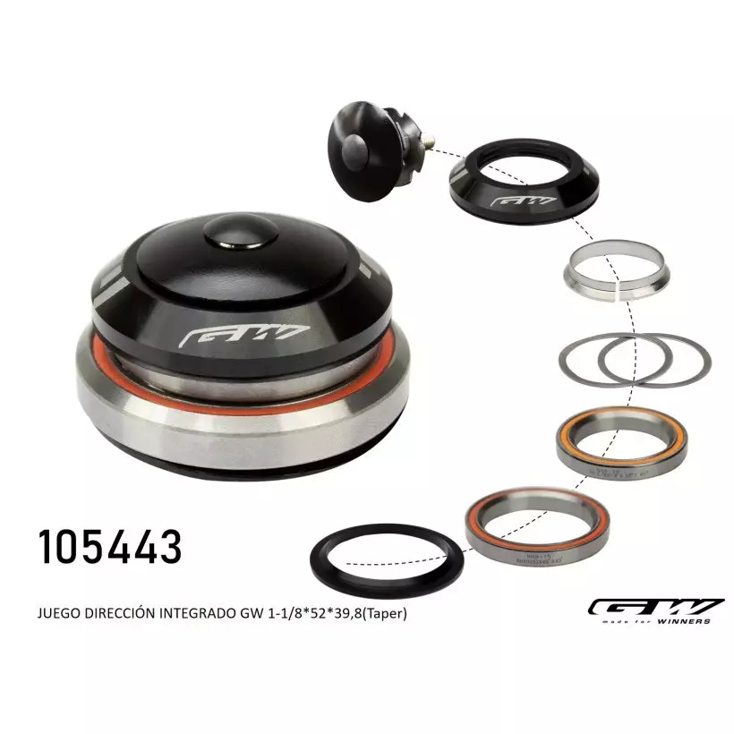 JUEGO DIRECCION INTEGRADO 1-1/8*1.5 H373 ALUMINIO NEGRO GW, JUEGO DE DIRECCIÓN EN ALUMINIO CON BALINERAS SELLADAS EN ACERO SISTEMA CÓNICO (TÁPER SYSTEM) 1 1/8*1.5 ESPECIAL PARA MARCOS CON FRENTE CÓNICO (FLAMMA/ PANTHER)