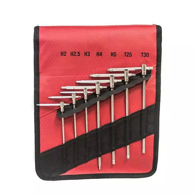 Un folio completo de las llaves hexagonales y torx más utilizadas. Todas las herramientas están hechas de acero de alta resistencia que también es extremadamente resistente a los golpes.
