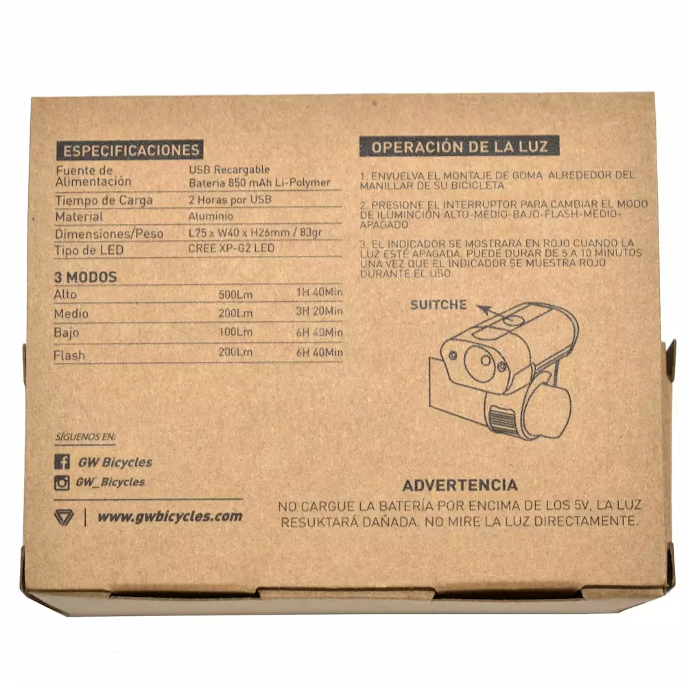 Contenido: 1 luz, 1 cable usb, 1 soporte luz