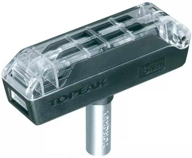 Llave dinamo métrica preestablecida de 5 Nm (3,68 lbf • ft) para evitar daños en barras, horquillas o postes livianos por apriete excesivo.