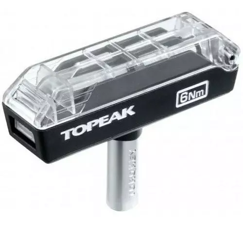 Llave dinamo métrica preestablecida de 6 Nm (4,42 lbf • ft) para evitar daños en barras, horquillas o postes livianos por apriete excesivo.
