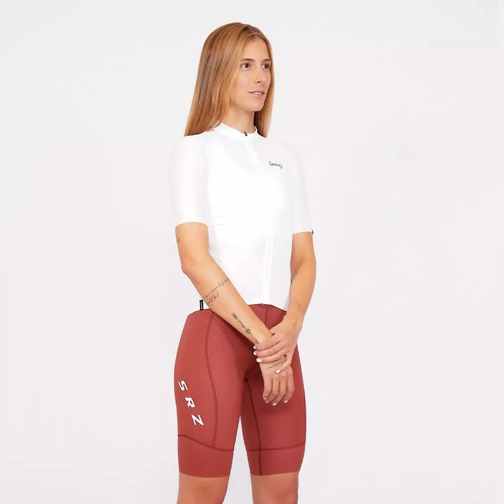 Las cargaderas en su parte posterior (espalda), tienen una abertura realizada con corte láser para mayor frescura. Su material es suave al contacto con la piel. En la parte anterior y de los hombros, cuenta con un material transpirable y elástico con buen retorno para mantener la pantaloneta en su sitio, sin tallar ni cortar la piel.