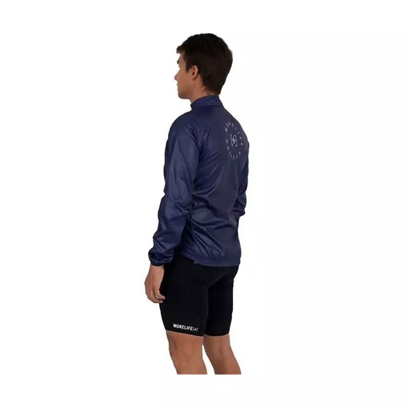 La Chaqueta Rompevientos Morelife Navy con cierre elaborado en tela antifluido, cuello alto y bolsillo en la parte posterior donde podrás llevas tus objetos en medio de tus rodadas, ideal para días de sol y lluvia donde quieras tener una doble protección.