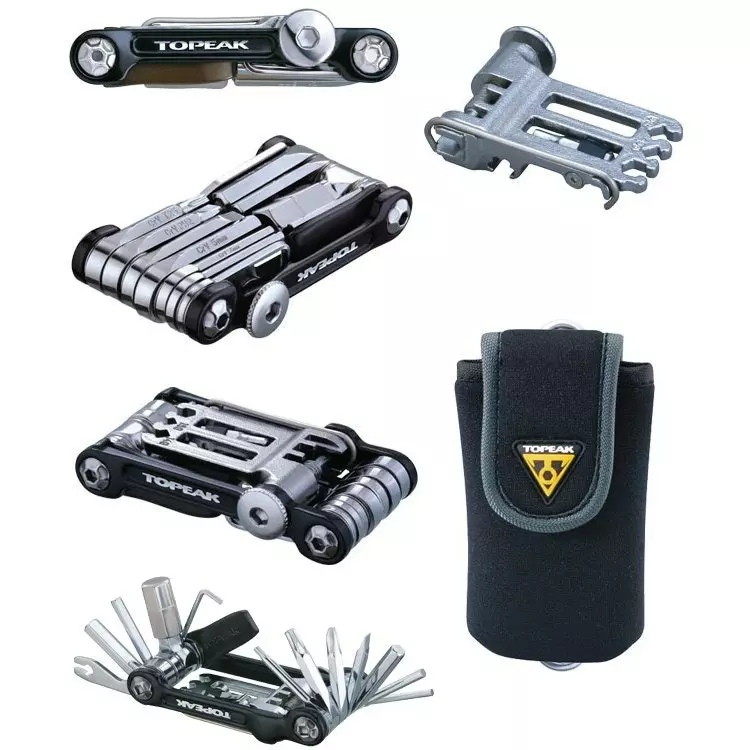 Una mini herramienta de precisión con 23 funciones de metal completo, fabricada para reparar cualquier camino o camino. Las llaves Torx T10 y T25 simplifican el trabajo del freno de disco hidráulico. Incluye una herramienta de ajuste automático y una bolsa de neopreno. La herramienta perfecta para carreras de resistencia, entrenamiento y touring.