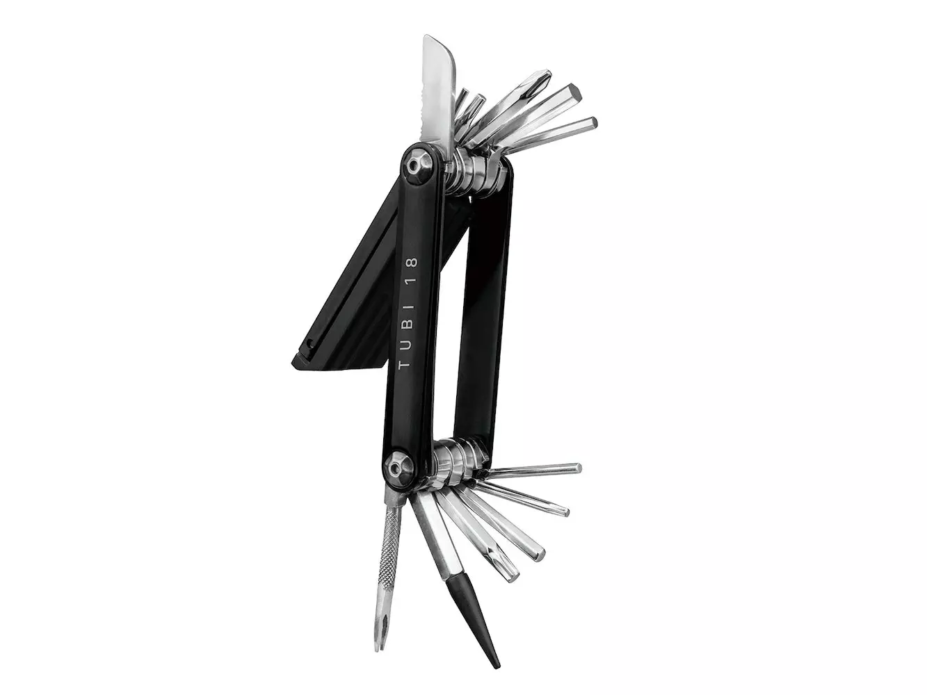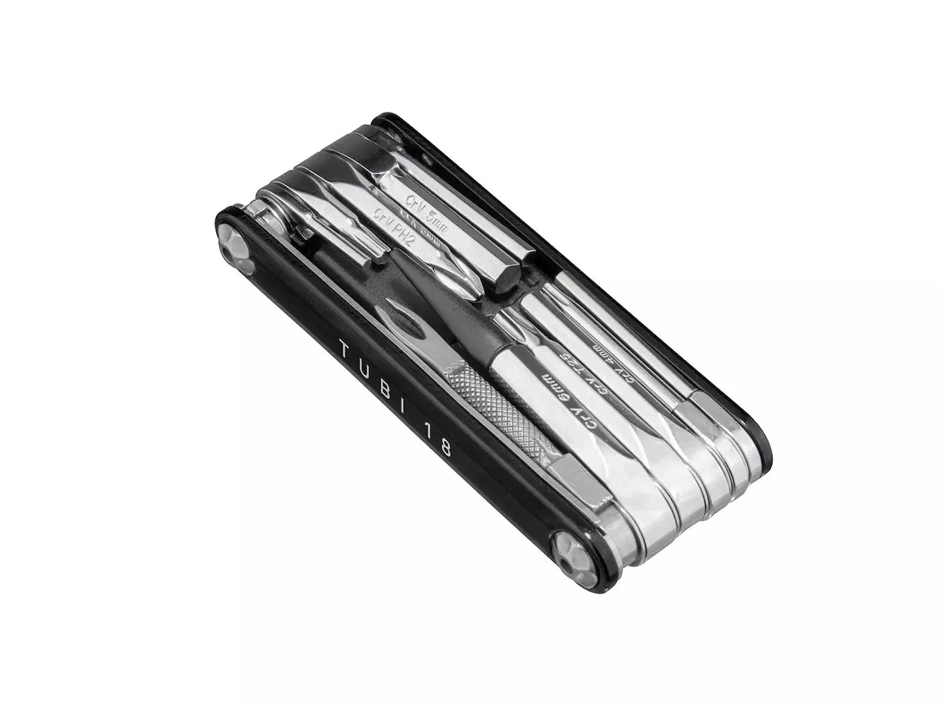 Mini herramienta de precisión con 18 funciones y calidad profesional con funciones integradas de reparación de neumáticos sin cámara. Las herramientas de reparación sin cámara y el compartimento del enchufe de reparación de neumáticos se almacenan dentro del cuerpo de la herramienta para un perfil aerodinámico. Perfecto para cualquier reparación en carretera o en senderos.