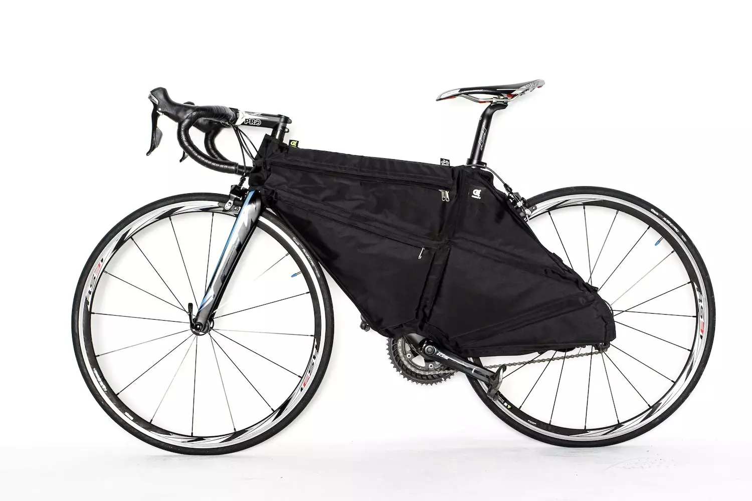 El Travel Pad es un protector para bicicleta de ruta diseñado para proteger el marco durante viajes en avion, automóvil, autobus, portabicicletas y para manter protegida la bicicletas en casa, cuarto de util o en cualquier tipo de almacenamiento.