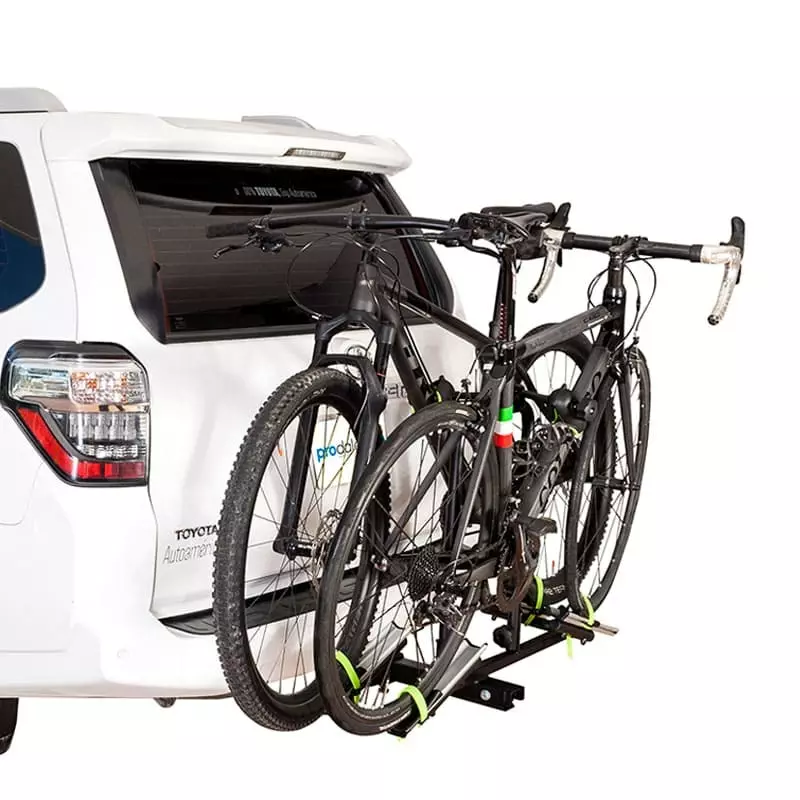 Perfecto para viajes en grupo y familias numerosas, pues con él podemos transportar hasta 2 bicicletas. Fabricado con acero de alta resistencia, nuestro portabicicletas de tiro vertical transporta de manera segura hasta dos bicicletas. Se adapta a cualquier vehículo con tiro de cuadrante de 2 pulgadas.