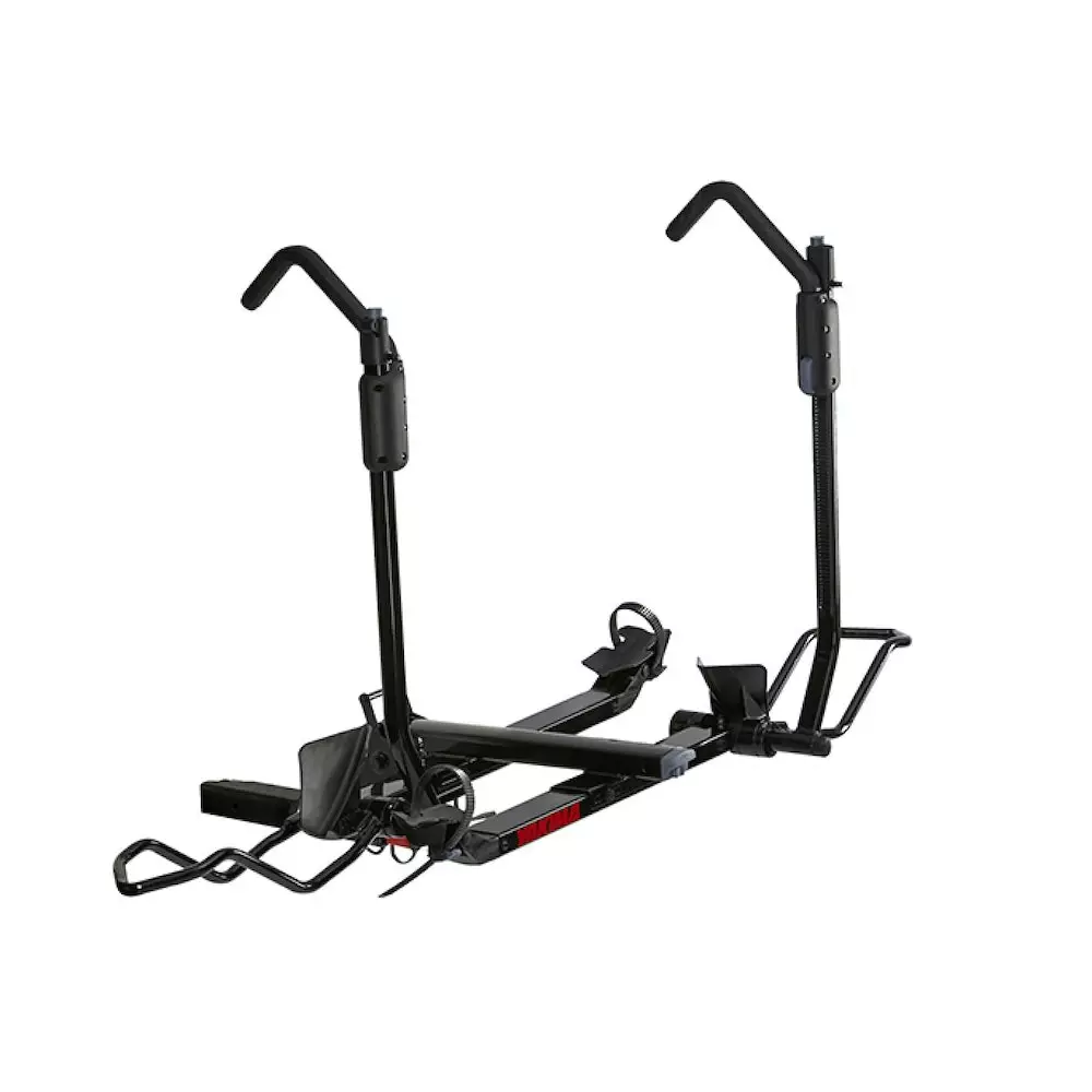 Portabicicletas de tiro que transporta dos bicicletas en bandejas sin contacto con el marco. Con un nuevo sistema de pedal y palanca para inclinar el portabicicletas incluso con las bicicletas cargadas y así acceder al maletero del carro. Fácil y rápida instalación gracias a la perilla de ajuste rápido SpeedKnob. Las bandejas se ajustan para reducir la interferencia entre las bicicletas. Carga bicicletas rin 20″ hasta rin 29″ con llantas hasta de 4.8″ de ancho. Incluye sistema de candado SKS para asegurar las bicicletas.