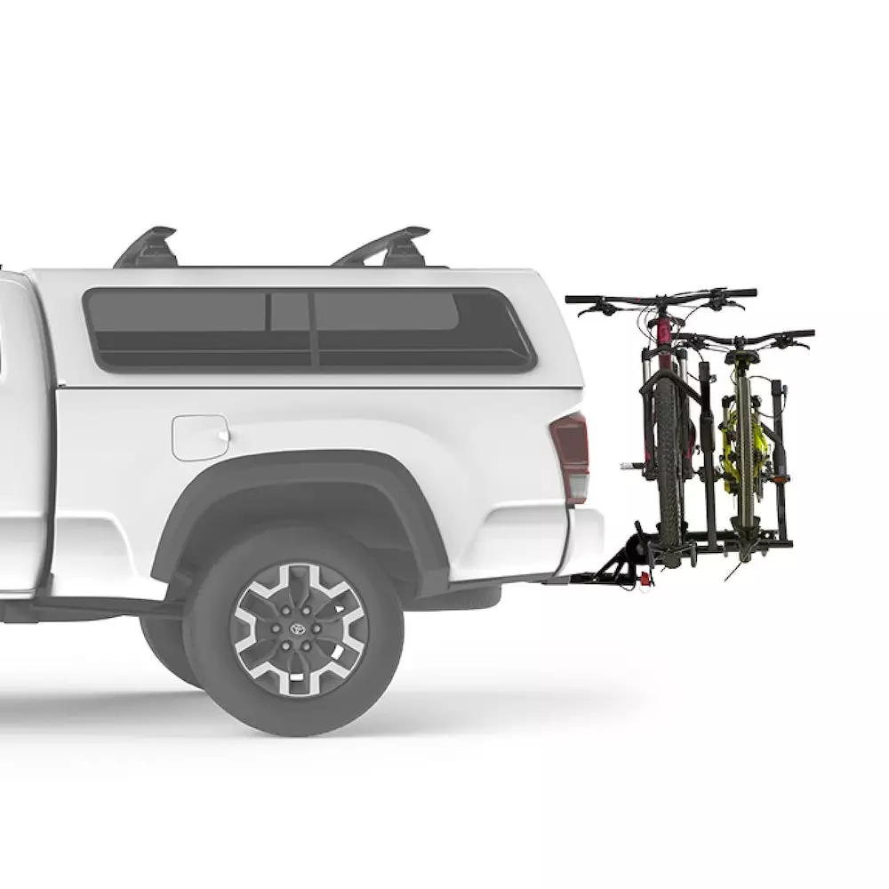 Portabicicletas de tiro que transporta dos bicicletas en bandejas sin contacto con el marco. Con un nuevo sistema de pedal y palanca para inclinar el portabicicletas incluso con las bicicletas cargadas y así acceder al maletero del carro. Fácil y rápida instalación gracias a la perilla de ajuste rápido SpeedKnob. Las bandejas se ajustan para reducir la interferencia entre las bicicletas. Carga bicicletas rin 20″ hasta rin 29″ con llantas hasta de 4.8″ de ancho. Incluye sistema de candado SKS para asegurar las bicicletas.