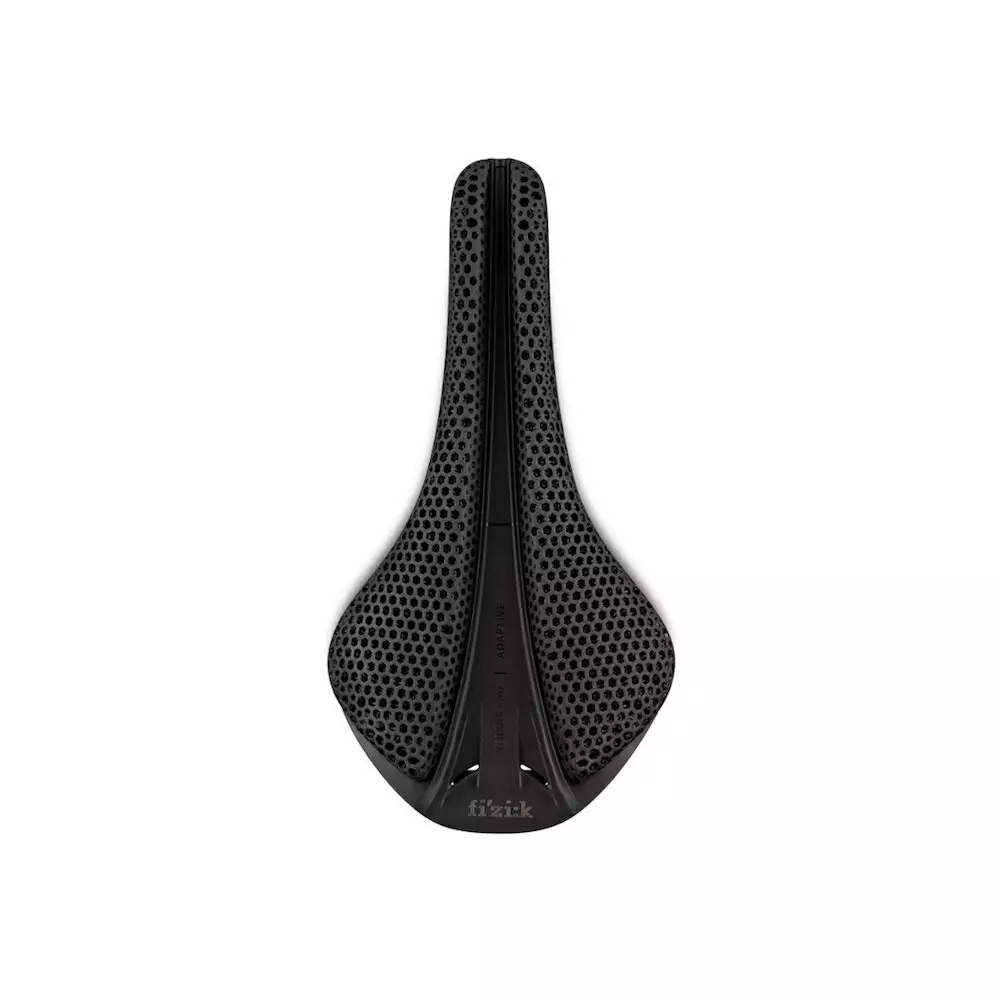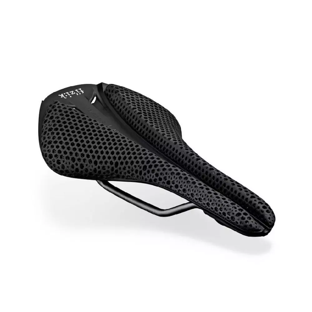 Un asiento de bicicleta impreso en 3D con una carcasa de nailon reforzado con carbono y un riel hueco Kium con una alta relación resistencia / peso grad (R3) (139mm) 215 gr.