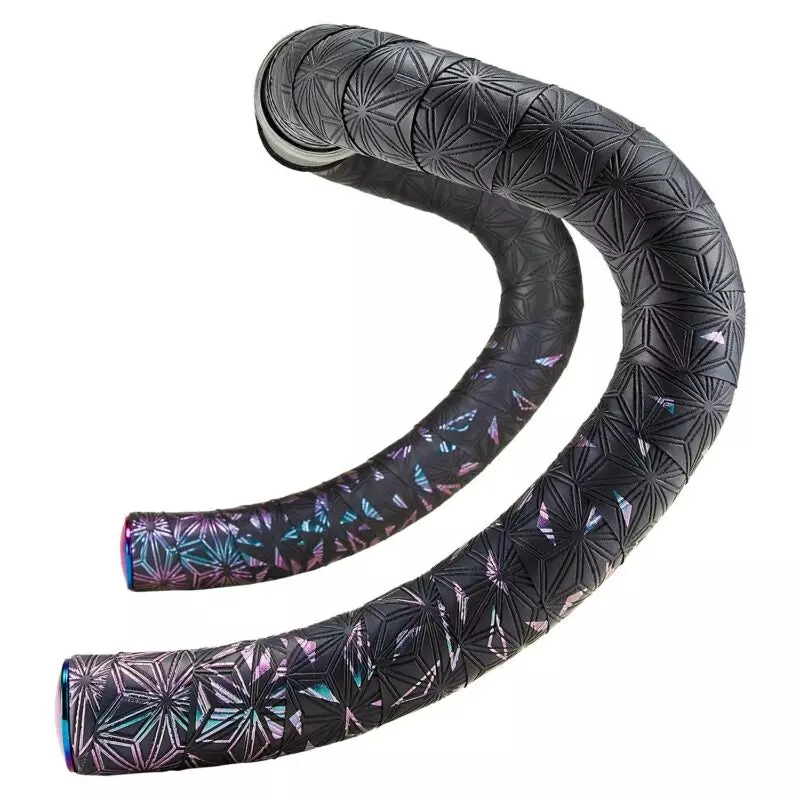 Cinta de manillar Super Sticky Kush, negro con con tornasol tapones tornasol.