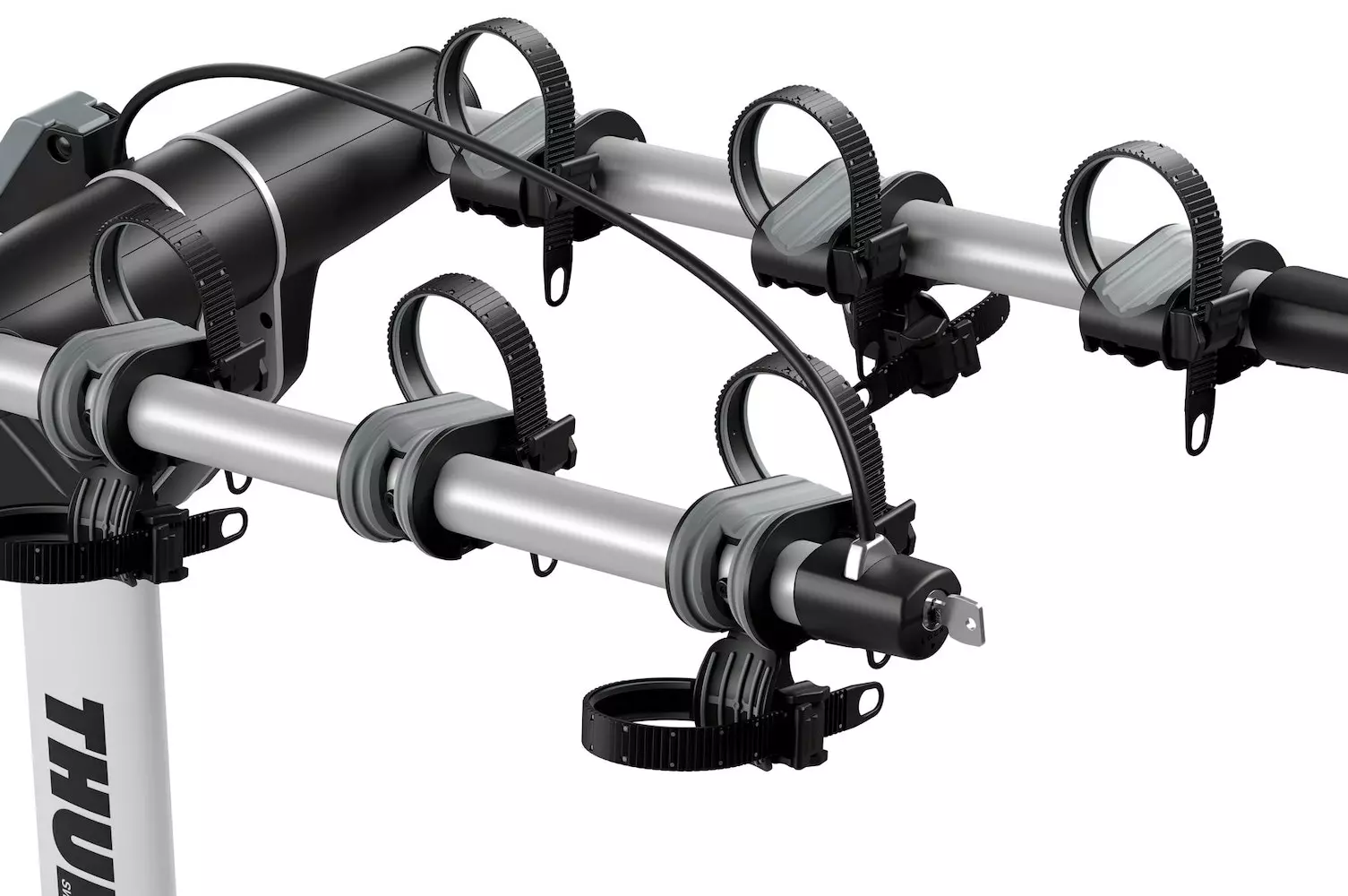 El portabicicletas para enganche liviano de aluminio brinda excelente protección y una forma fácil y conveniente de montar y desmontar las bicicletas.