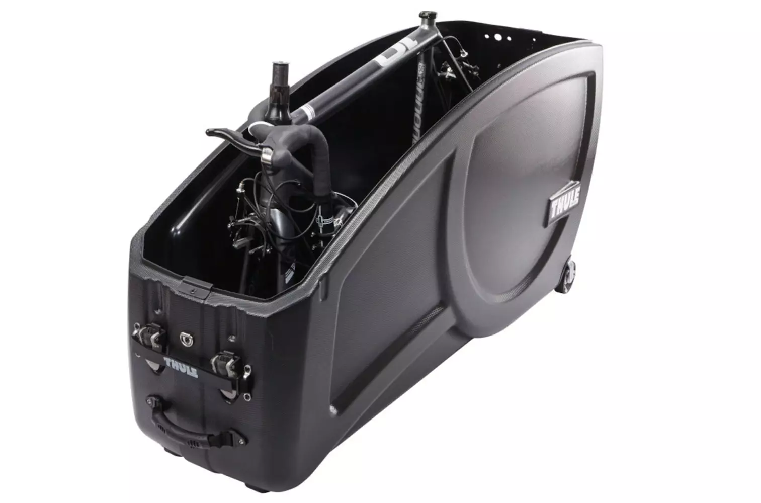 Estuche para bicicletas rígido y protector de primera calidad con estante para ensamblaje de bicicleta integrado que simplifica el viaje con la bicicleta.