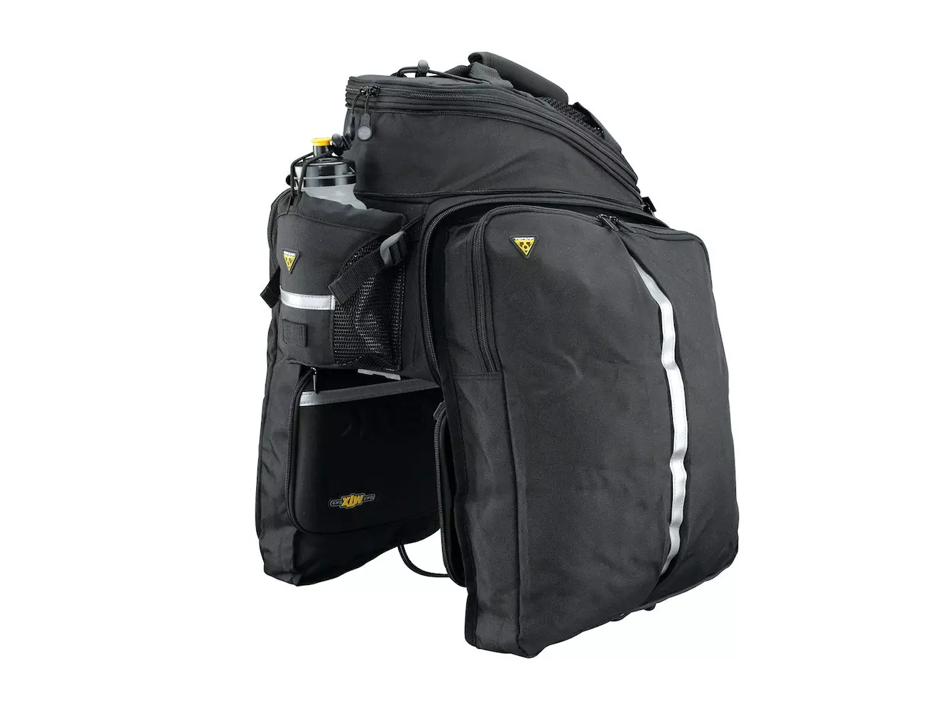 El MTX TrunkBag utiliza un proceso de material único para proporcionar nuestro bolso de la serie MTX más grande, más rígido y más resistente a la intemperie. Además de la sección superior expandible y el portabotellas trasero, los paneles laterales se expanden para llenar alforjas, lo que maximiza la capacidad. Compatible con todos los racks MTX QuickTrack® con marcos laterales acoplables. Los marcos laterales dobles MTX son necesarios cuando se usan alforjas en MTX BeamRacks.