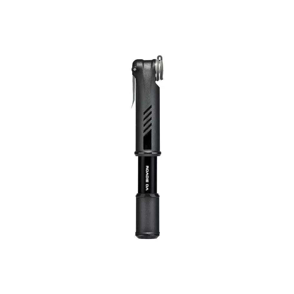 La versión más compacta y liviana de la serie de bombas DA cabe fácilmente en su bolsillo de jersey. La doble acción (DA) duplica el volumen con cada golpe e infla los neumáticos a 120 psi / 8 bar. El tapón antipolvo integrado mantiene limpio el cabezal de la bomba y la palanca de bloqueo del pulgar asegura un cierre hermético.