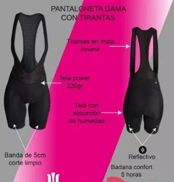 pantaloneta con tirantes femenina con badana para recorridos promedio de 5 horas.